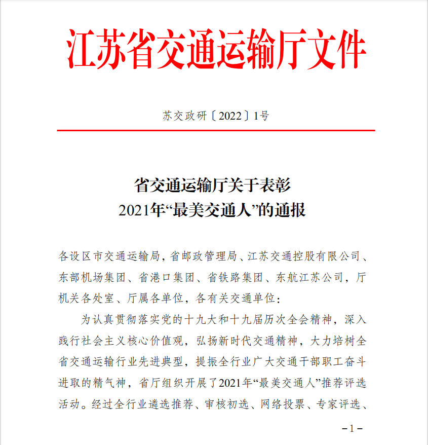 近日,江蘇省交通運輸廳下發(fā)《省交通運輸廳關(guān)于表彰2021年“最美交通人”的通報》,徐州公交集團(tuán)公交車駕駛員王艷榮獲“最美交通人”稱號。