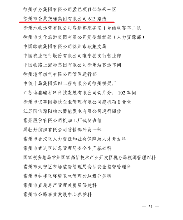 4月28日下午,江蘇省總工會發(fā)布關于表彰2022年省五一勞動獎和省工人先鋒號的決定,徐州交控公交集團613路線獲得“江蘇省工人先鋒號”殊榮。