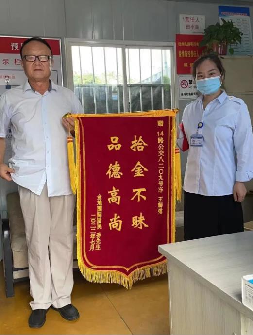 “在這個智能時代,手機(jī)丟了真的是寸步難行,感謝14路駕駛員王師傅幫我找到丟失的手機(jī)?!?月29日,市民孫先生手持錦旗來到淮海花木城調(diào)度室,對王師傅拾金不昧的高尚品德表示感謝。