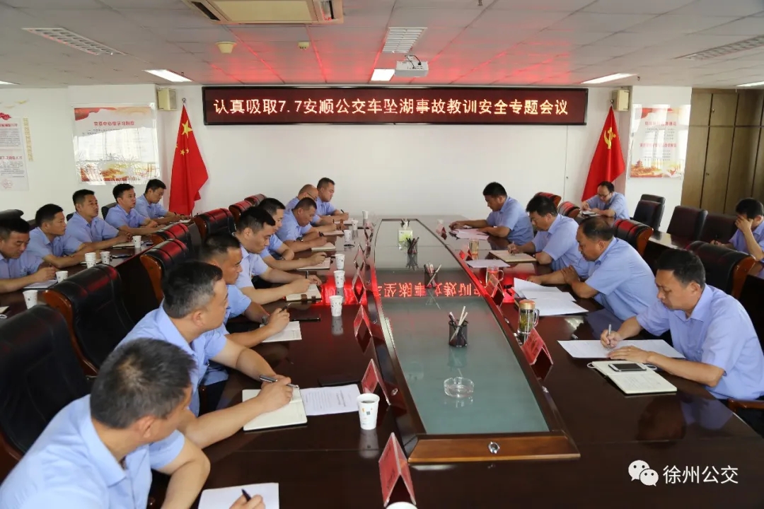 為吸取“7·7”安順公交車墜湖事故教訓(xùn),認(rèn)真貫徹落實習(xí)近平總書記關(guān)于安全生產(chǎn)重要論述,按照市委、市政府安全生產(chǎn)專項整治三年行動方案及市交通運輸局、市交通控股集團相關(guān)要求,7月10日,徐州公交集團召開了認(rèn)真吸取“7·7”安順公交車墜湖事故教訓(xùn)安全專題會議。集團總經(jīng)理馮陸陸,常務(wù)副總經(jīng)理蔣成彪,調(diào)研員王遠(yuǎn)慶以及各營運公司經(jīng)理、安全經(jīng)理和機關(guān)、直屬單位負(fù)責(zé)人參加了會議。