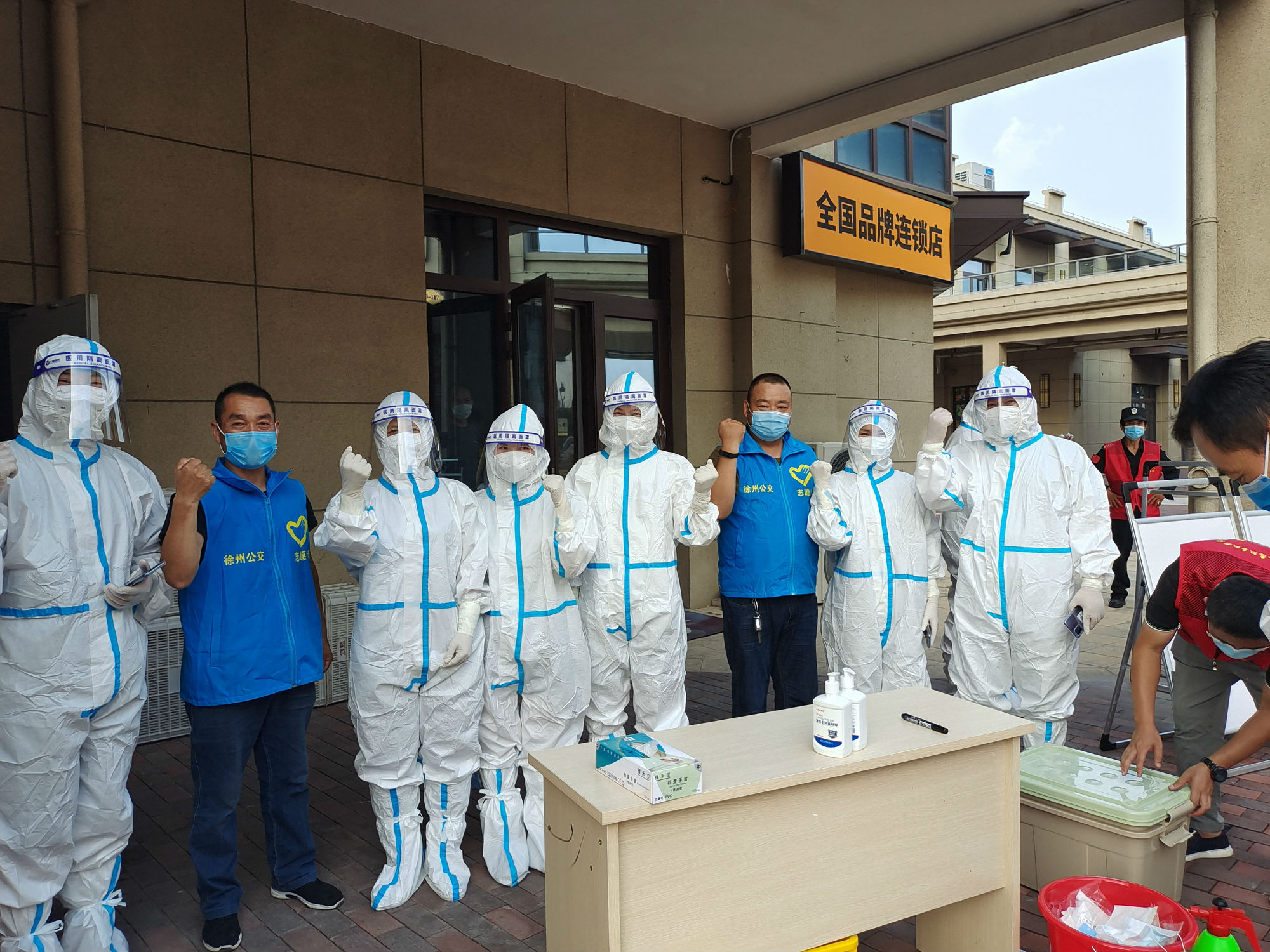 所有人員默契配合,當(dāng)天檢測人員達(dá)九百余人,在高溫天氣下身穿防護(hù)服的隊員們后背已然被汗水浸濕,體驗到了醫(yī)護(hù)人員的艱辛。