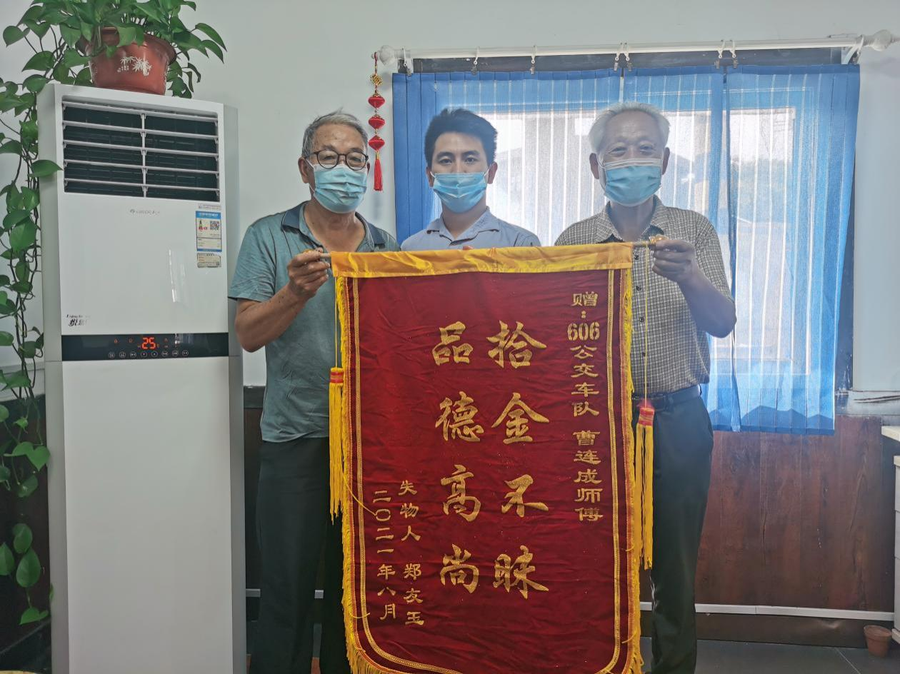 830日中午11點(diǎn)左右,市民鄭先生與同伴在大福源乘坐606路公交車趕往九七醫(yī)院就醫(yī),到醫(yī)院后發(fā)現(xiàn)錢包丟,鄭先生萬分著急,在同伴的提醒下,他來到606路韓山調(diào)度室尋找失物。果不其然,鄭先生的錢包被駕駛員曹連成師傅送到調(diào)度室妥善保管。鄭先生萬分感謝說道:錢包里除了現(xiàn)金和各類銀行卡外,還有醫(yī)保卡、社保卡,補(bǔ)辦十分麻煩,咱們司機(jī)師傅真是幫了大忙。”91日,鄭先生特意送來錦旗表達(dá)謝意。