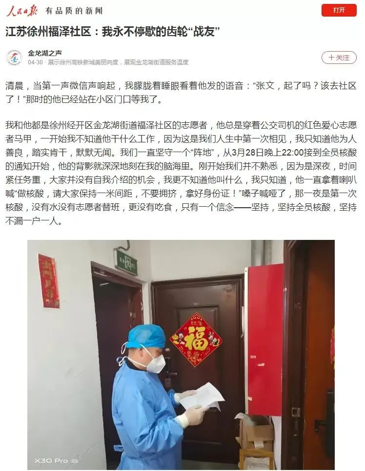 《人民日報》平臺發(fā)布文章《江蘇徐州福澤社區(qū):我永不停歇的齒輪戰(zhàn)友