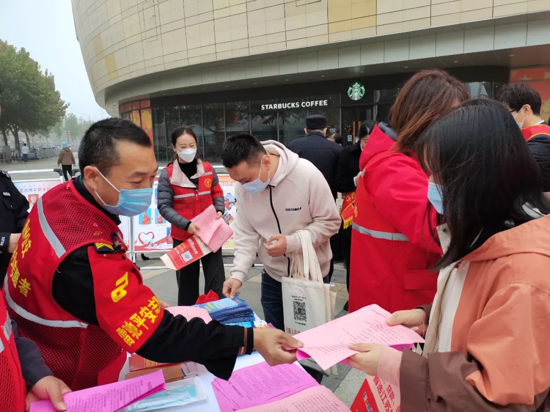 活動現(xiàn)場,徐州公交雷馳平安志愿者服務(wù)隊的隊員們向路過的市民分發(fā)志愿者宣傳單和口罩、購物袋等精美小禮品。